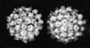 Вирус папилломы человека, в отличие от многих других вирусов, не размножается в культуре клеток и не может быть получен в виде массы вирусных частиц — вирионов. Однако с помощью электронного микроскопа вирионы этого вируса обнаружены в пораженных тканях. Ниже представлены вирионы папилломавируса в ткани опухоли.