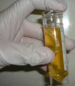 2. Бактериологическое исследование мочи (посев мочи). Мочу для бактериологического исследования берут с помощью стерильного катетера, который вводят после тщательного туалета наружных половых органов и спринцевания переднего отрезка уретры. Даже при соблюдении этих предосторожностей первую порцию мочи выливают, а в стерильную посуду собирают последующую порцию мочи. В том случае, когда по какой-либо причине катетер ввести нельзя, мочу собирают при свободном мочеиспускании. При этом также используют только вторую (среднюю) порцию мочи, которая прошла через мочеиспускательный канал, уже обмытый первой порцией. Исследование мочи проводится сразу после ее выделения, иначе попавшие в нее, несмотря на все предосторожности, случайные бактерии быстро размножаются и затрудняют определение возбудителей заболевания.