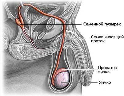 Подробная схема расположения яичка в мошонке