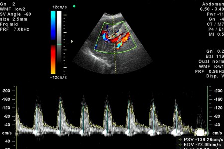 Любые виды препятствий, затрудняющих отток крови можно обнаружить при помощи доплер УЗИ. При этом скорость оттока крови будет заметно сокращена по сравнению с нормой.