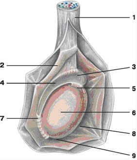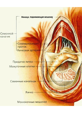 Подробная схема расположения яичка в мошонке